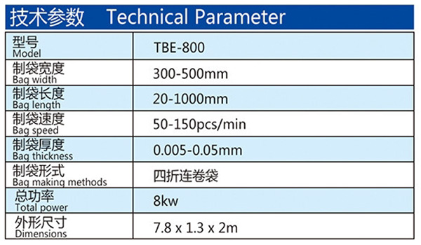機器特性 此設備為生產連卷四折平底垃圾袋的專用設備,單通道高速無拉伸,操作簡便,底封好,收卷整齊,個數準確,手動手卷。此設備采用全鋼板一體而成,用電220v照明電即可。