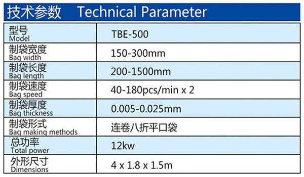 該機電腦控制,高位停車,自動放料,是生產垃圾袋、八折連卷背心袋、S型袋的理想設備。
